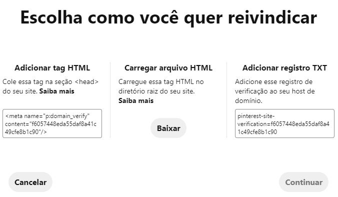 Reivindicar o seu site mostra ao Pinterest que você tem um site legítimo.