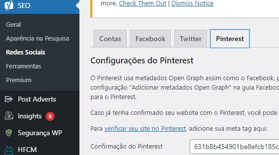 Você pode simplesmente copiar a tag e cole em “confirmação do Pinterest ” e pressionar Salvar alterações.